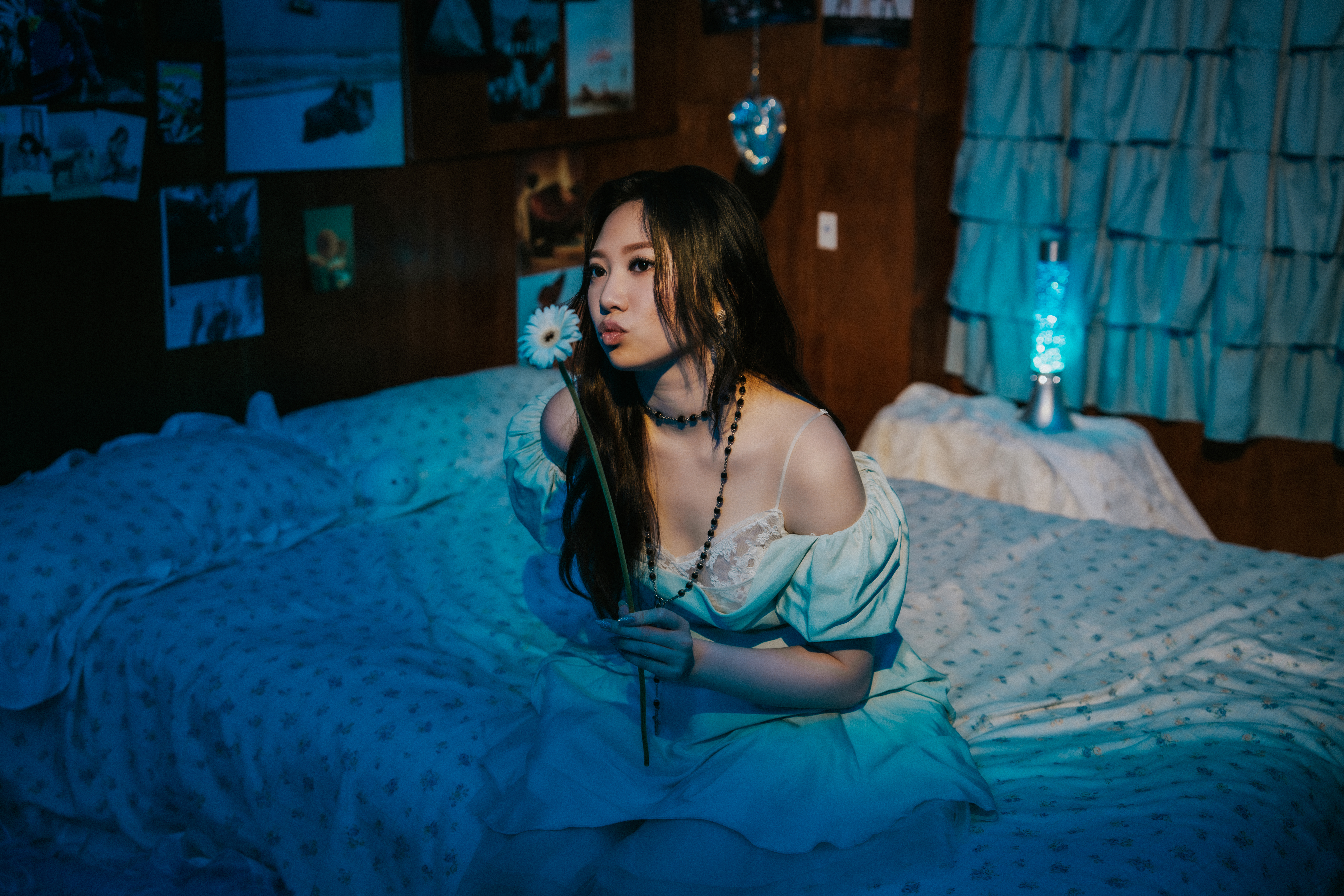 說回今次 MV,雖然拍攝時間頗長,但 Jasmine 並無任何怨言,更說:「之前拍其他 MV 例如〈慣性倔強〉全日要拍外景,又熱又多蚊,仲要喺炎熱天氣下著厚衫,實在好辛苦,今次喺室內拍攝,好 chill 又簡單,較易 handle,當中我特別鍾意一開始第一個 scene 要我扮瞓著咗,因為攤喺張床真係好舒服!」