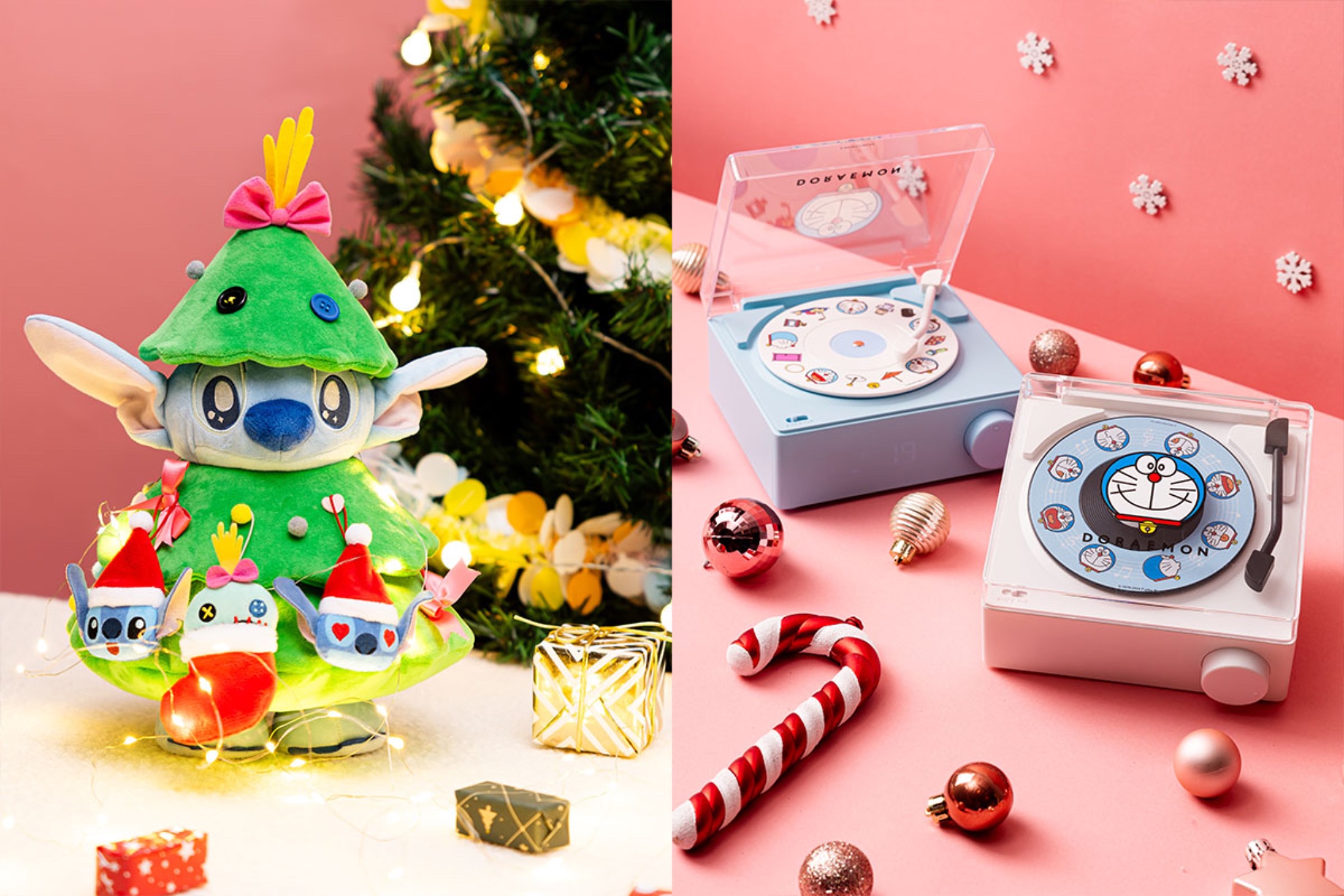換上聖誕樹服飾的史迪仔不僅外型可愛,還附帶三個表情各異的小史迪仔及小甘掛飾,輕輕按壓其面頰,史迪仔會發出柔和燈光,展現害羞笑容。