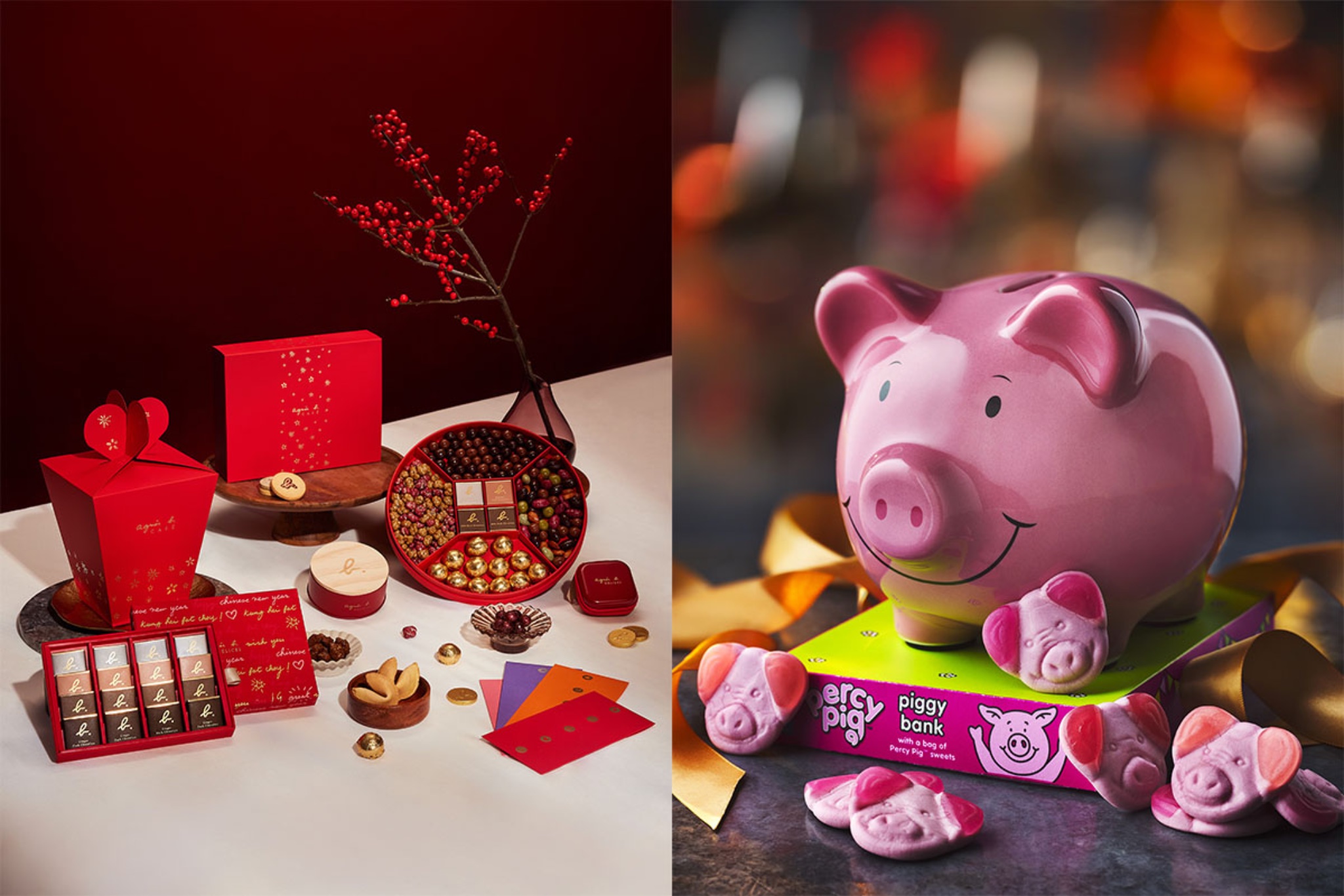 備有多款賀年美食,從糖果到精美甜點,為新春增添歡樂滋味。三款香港限定的新年禮盒包括加大號的車厘子酒心黑朱古力禮盒、酥脆的牛油芝士脆條新年禮盒,還有可愛的小豬錢罌連果汁味橡皮軟糖,每一款都讓人愛不釋手!